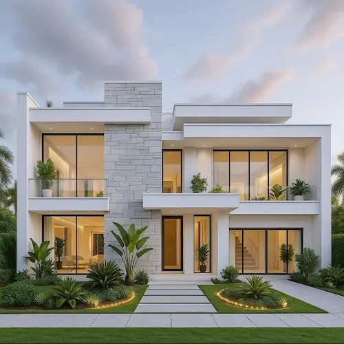 الواجهات مزينة بتفاصيل معمارية حديثة تجمع بين الخطوط النظيفة والعناصر الطبيعية، بينما تم تصميم المساحات الداخلية للوحدات بحيث تستوعب مختلف أنماط الحياة، مع الاستفادة من الضوء الطبيعي والتهوية المثالية. الفناء الداخلي والحدائق المحيطة مصممة لتكون امتدادا طبيعيا للمناطق الداخلية، مما يخلق إحساسا بالرحابة والهدوء.