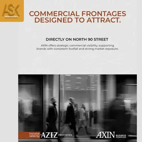 axin business complex يمثل القوة الجديدة التي تتمتع بها شركة عزيز للتطوير العقاري على شارع التسعين الشمالي، ويتبين من المناطق المختارة استهداف ما يتمتع بالحيوية على مدار اليوم وبه قاعدة عملاء جاهزة للاستفادة من أنشطة المول.