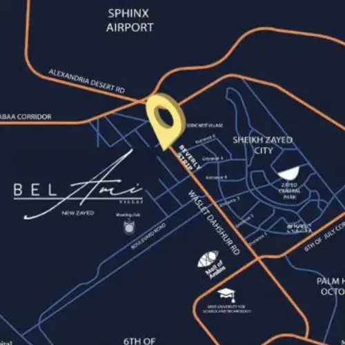 تؤمن شركة بيراميدز روكس للتطوير العقاري أن الموقع المميز هو مفتاح تميز ونجاح المشروع، لذا فإن bel ami 2 الواعد يقع في قلب مدينة زايد الجديدة بالقرب من المحاور الحيوية والطرق التي تسهل وصول السكان إليه من كل مكان.