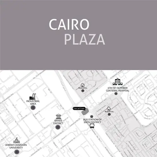 تم إنشاء cairo plaza في قلب الحركة التجارية في 6 أكتوبر، على أن يكون من المولات المتكاملة والتي تقدم جميع المزايا التي يبحث عنها المستثمرين، وبهذا الموقع تم مراعاة الميزة الأولى وهي المكان الحيوي الذي يحقق ربح كبير من المشروع في اليوم الأول له.