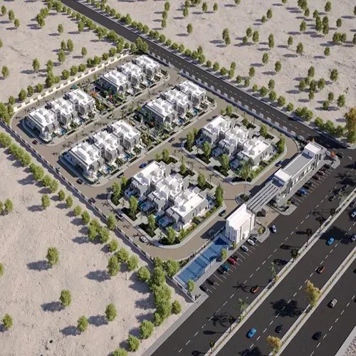 • مساحة ضخمة وعدد وحدات قليل ليصبح مجتمع سكني محدود الكثافة.