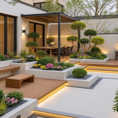 كما يضم المشروع مساحات خضراء واسعة ولاندسكيب متكامل يضفي إحساس بالهدوء والاتساع، مع واجهات معمارية حديثة وتصميمات خارجية راقية تعكس مستوى جودة مرتفع،