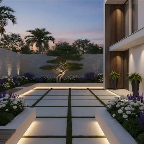 • جاردن خاصة لكل فيلا وبها جميع الخدمات الترفيهية مثل المصاطب والمجالس وحمامات السباحة.