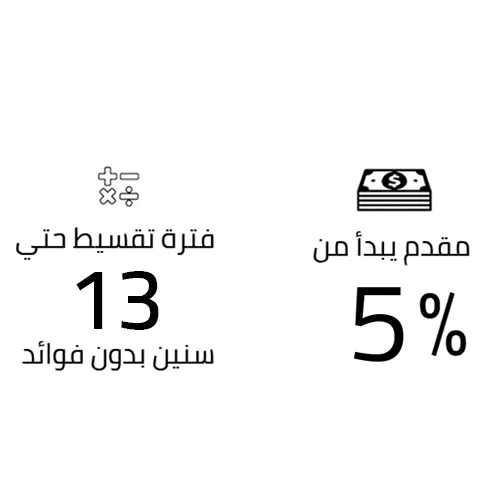 حيث يمكنك بدء الحجز بدفع مقدم يبدأ من 5% فقط، يليه 5% إضافية بعد شهرين، مع إمكانية تقسيط باقي المبلغ على مدار 13 سنة بأقساط متساوية، مما يمنحك راحة مالية على المدى الطويل.