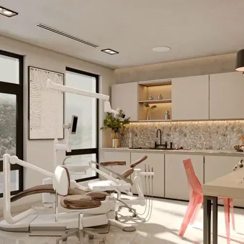 الواجهات الزجاجية الواسعة توفر إضاءة طبيعية غنية مما يعزز شعور الهدوء والاسترخاء بينما توزيع العيادات والمرافق الطبية داخل المبنى يعكس تخطيطا ذكيا يضمن الراحة والخصوصية في نفس الوقت.