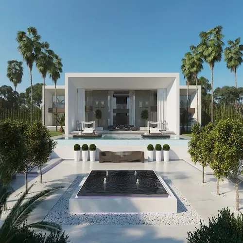 تصميم الوحدات يتميز بألوان متناغمة مع اللاند سكيب بواجهات جذابة ومداخل فخمة، مع توفير مساحات بينية للتشجير لتنعم كل فيلا بمساحتها الخاصة مع الهدوء وأعلى درجات الخصوصية.