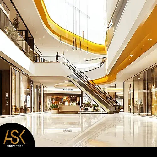 - مساحات شاسعة في الدور لحركة مرنة وسهولة تنقل بالمصاعد والسلالم الكهربائية.