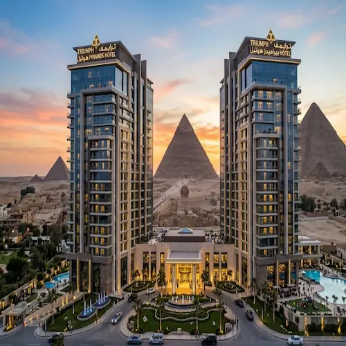 فندق ترايمف بيراميدز triumph pyramids hotel ضمن أحدث الأيقونات الاستثمارية التي أطلقتها ma group محمد ايوب جروب ليقدم تجربة فندقية عالمية في قلب منطقة الأهرامات مباشرة على طريق الفيوم السياحي.