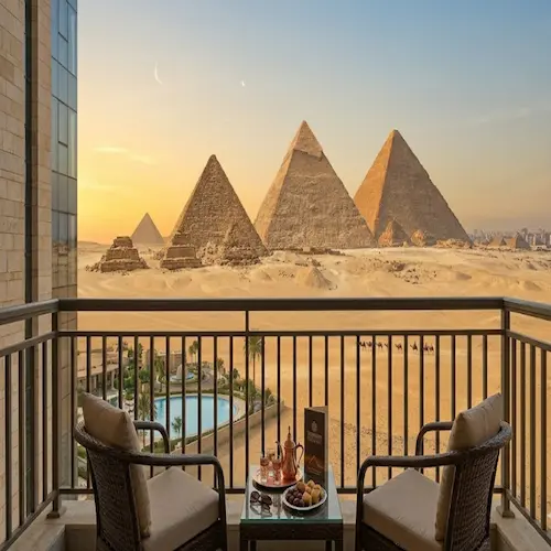 - Rooftop Restaurant يوفر تجربة طعام عالمية فريدة مع إطلالة كاشفة للأهرامات الثلاثة بالكامل مما يجعله وجهة سياحية في حد ذاته.