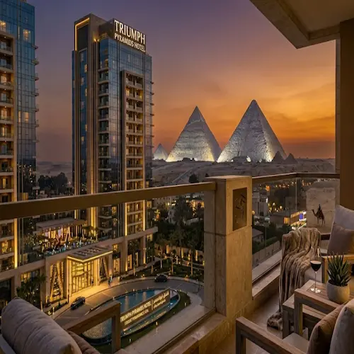 جاء اختيار موقع فندق ترايمف بيراميدز triumph pyramids hotel نتاج دراسات عميقة تم فيها استهداف وضع المستثمر في قلب مستقبل السياحة المصرية.